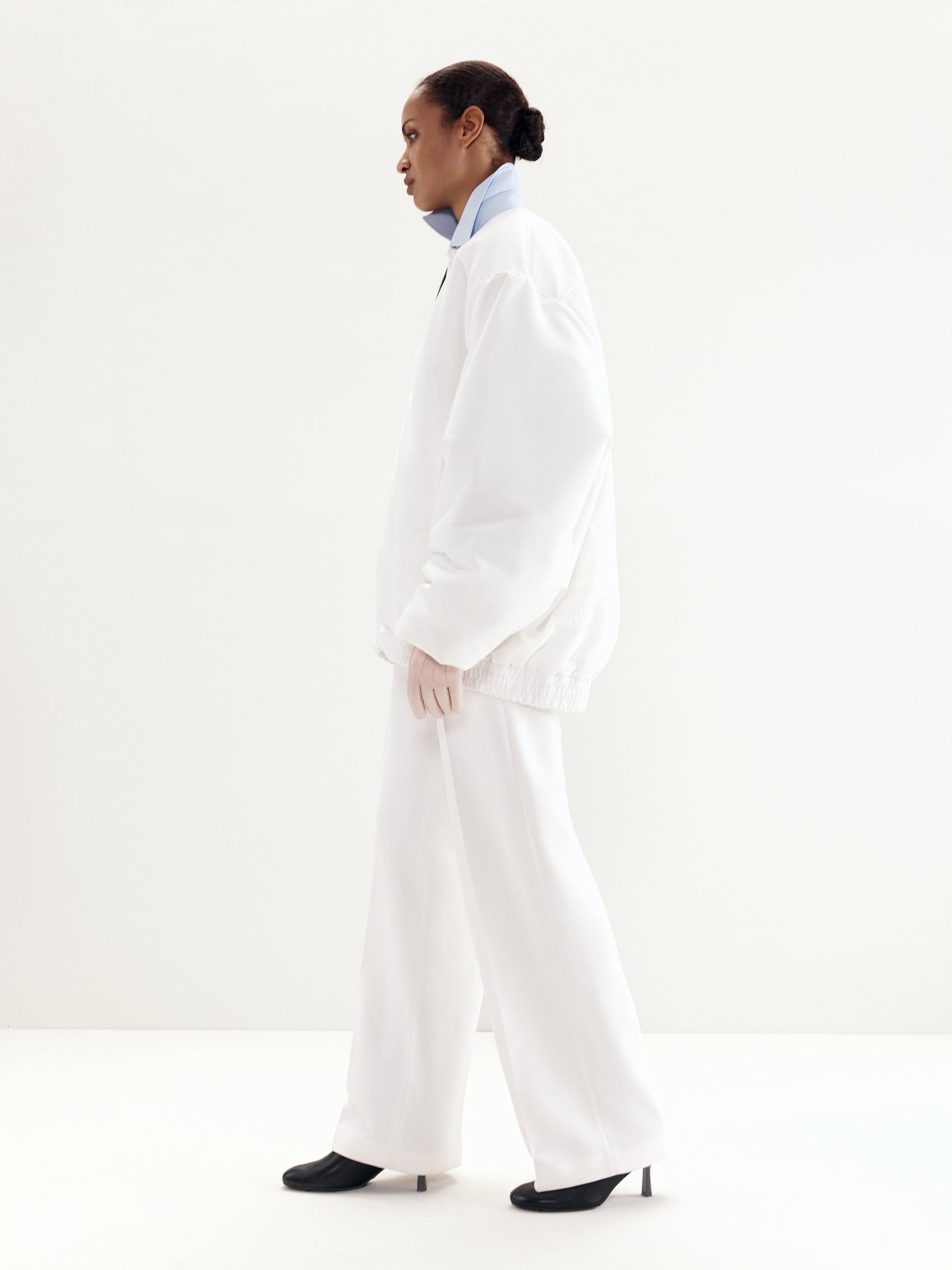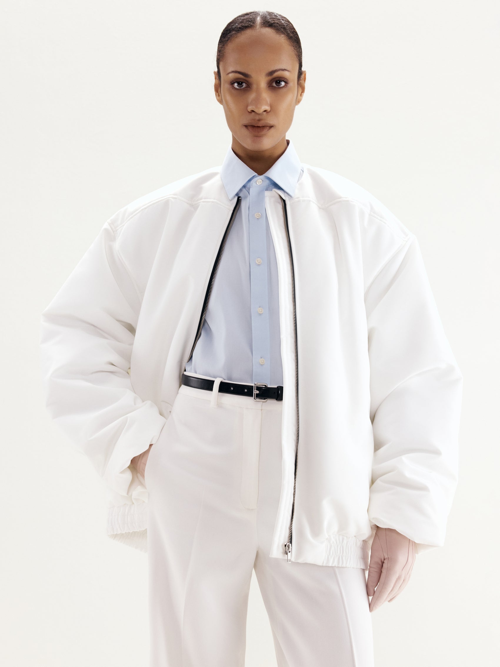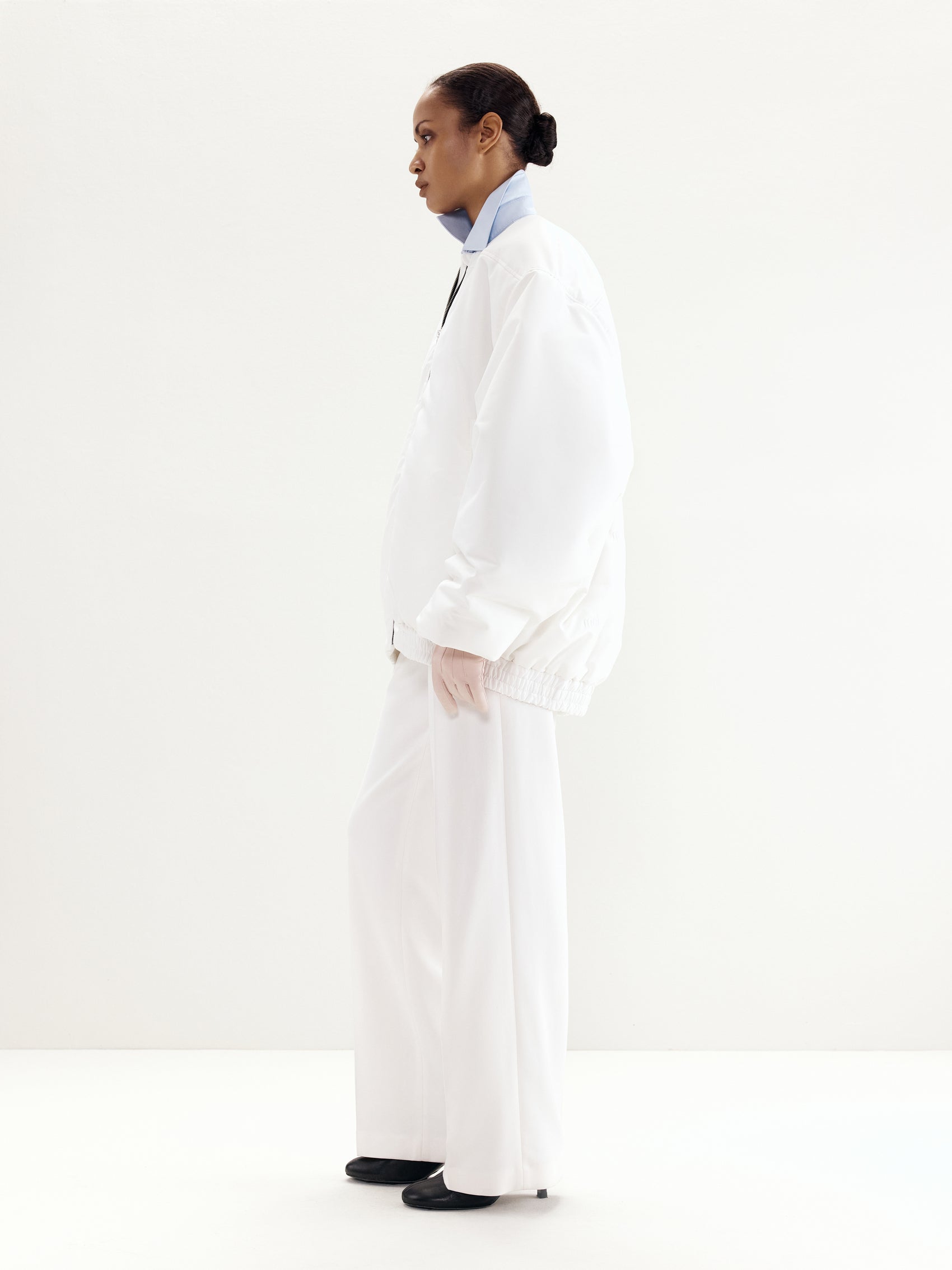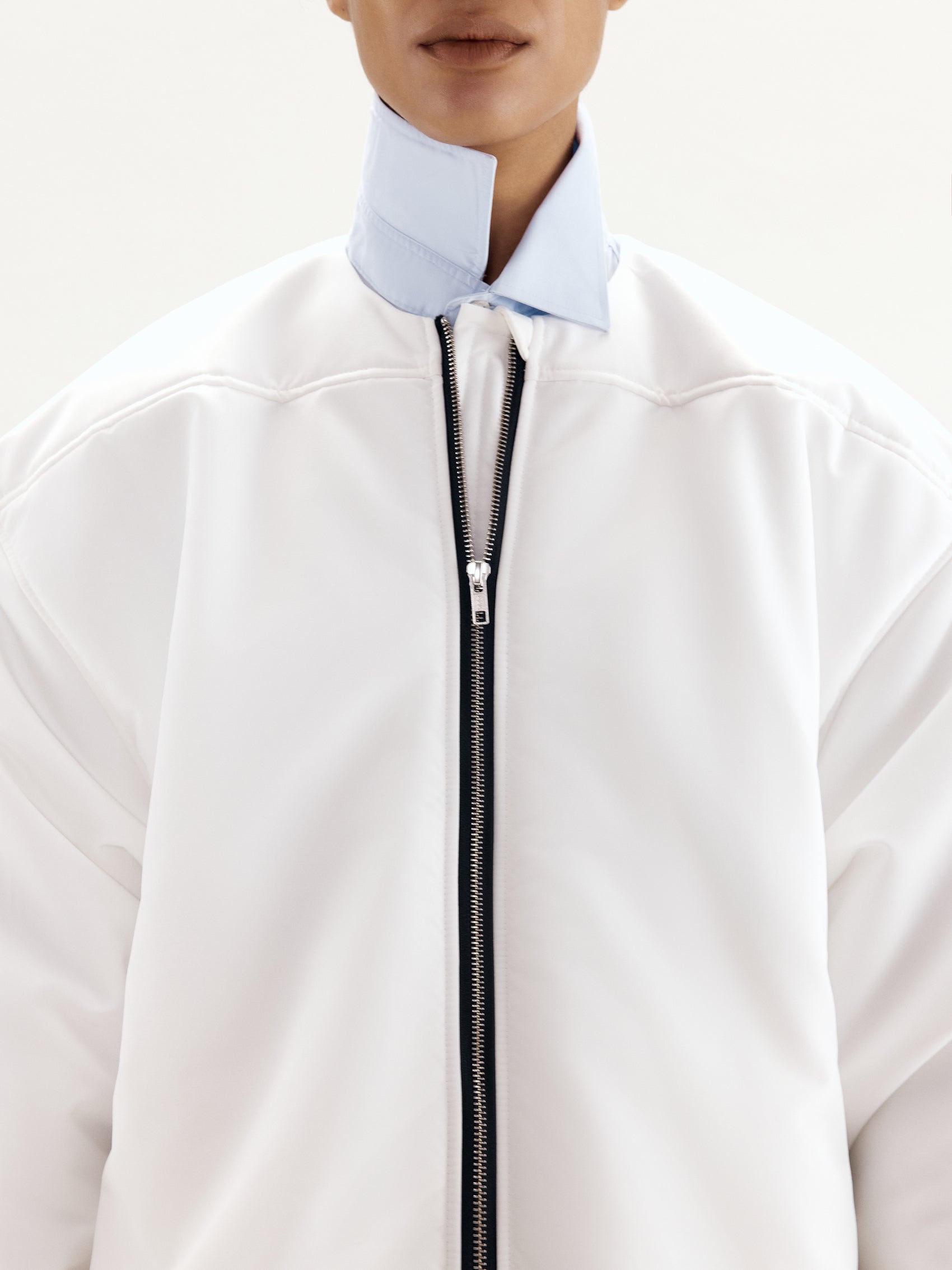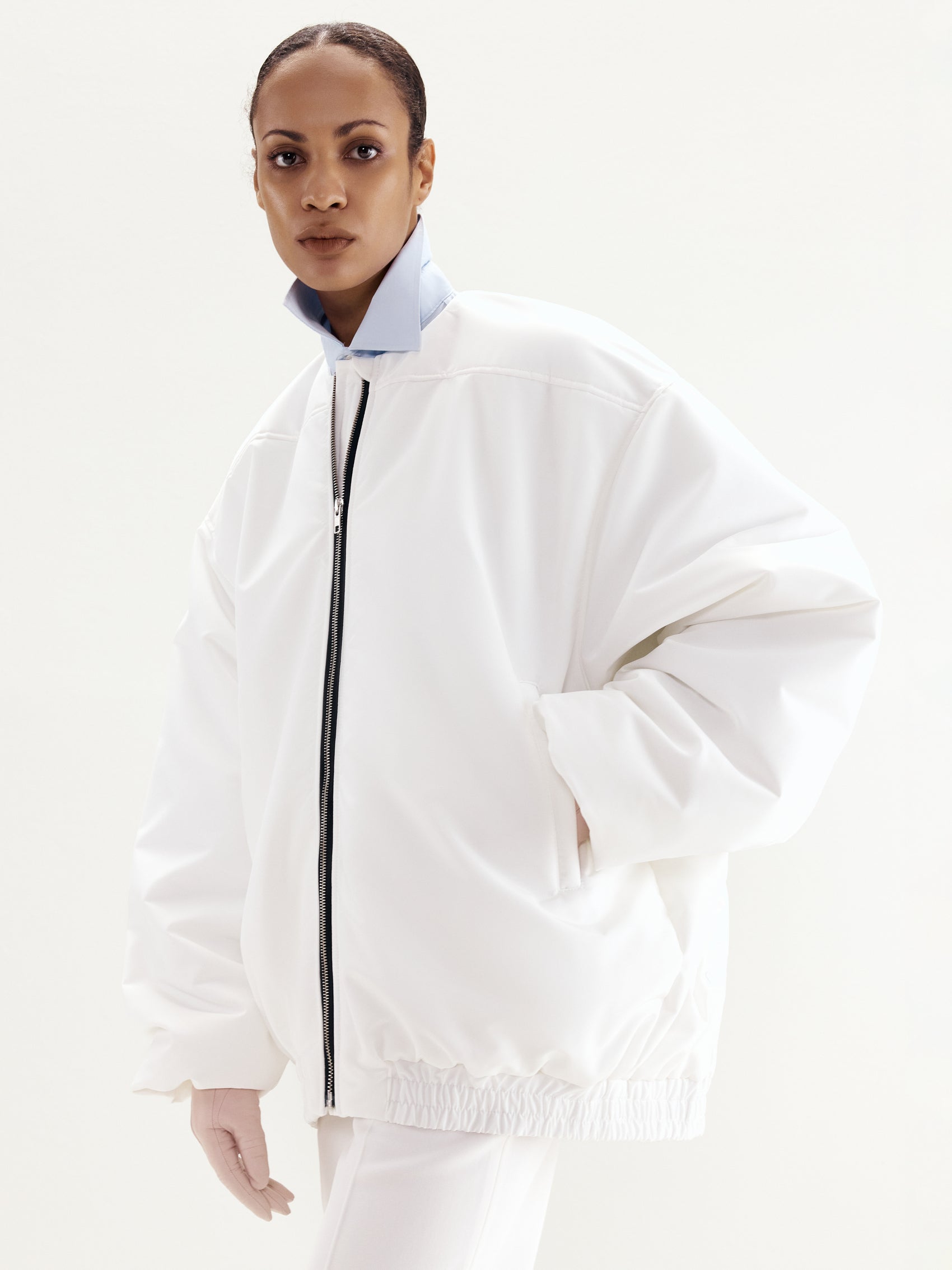 Об’ємний бомбер — стильний вибір для тих, хто цінує комфорт і елегантність у повсякденному житті. Його вільний силует забезпечує свободу рухів, а гарно оформлений комір додає особливого шарму. Спинка з брендованим логотипом підкреслює індивідуальність цієї моделі.
