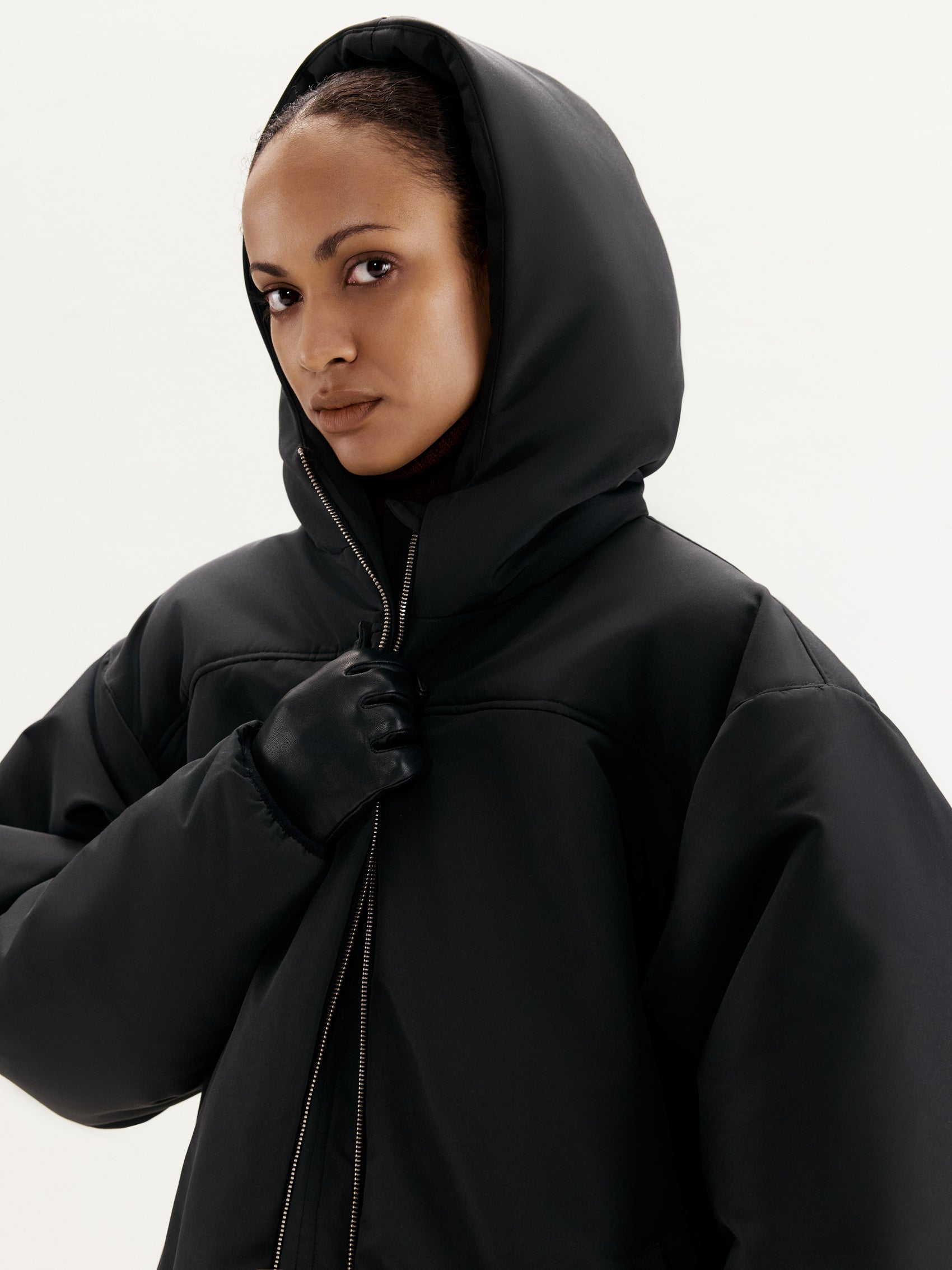 Середньої довжини куртка MANJUL — втілення сучасного дизайну та зручності. Глибокий капюшон надає додаткового захисту від несприятливих погодних умов, а елегантна застібка спереду підкреслює стильний вигляд. Просторі кишені забезпечують функціональність, а перестрочена спинка додає акцент на дизайнерських деталях. Манжети на рукавах з еластичного матеріалу підвищують комфорт, роблячи куртку універсальним варіантом для повсякденного використання.