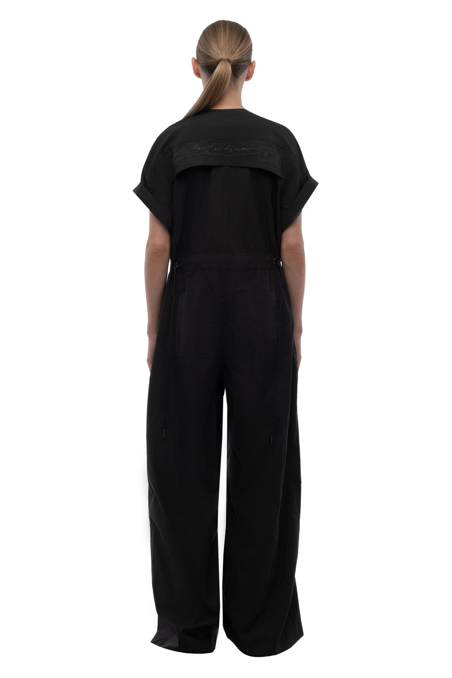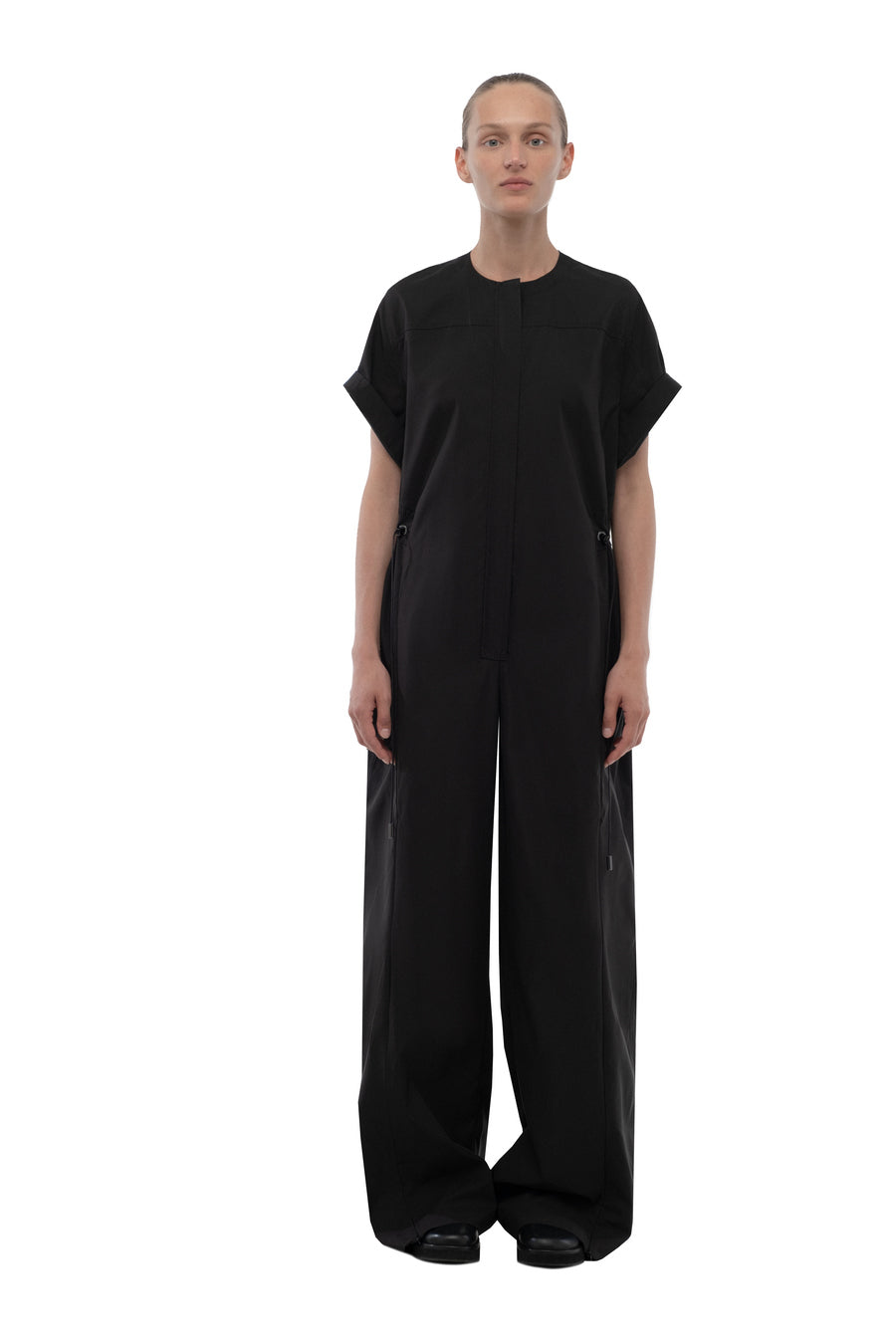 Чорний комбінезон з прямими штанинами W319