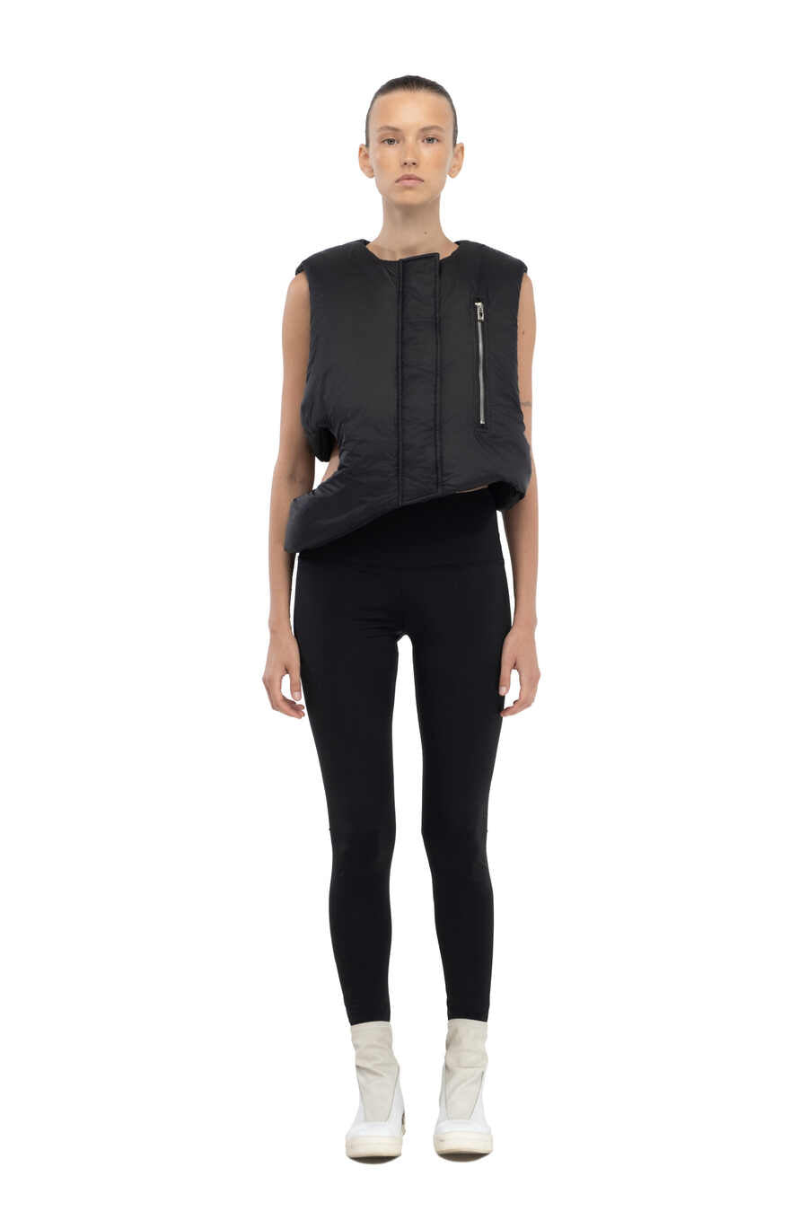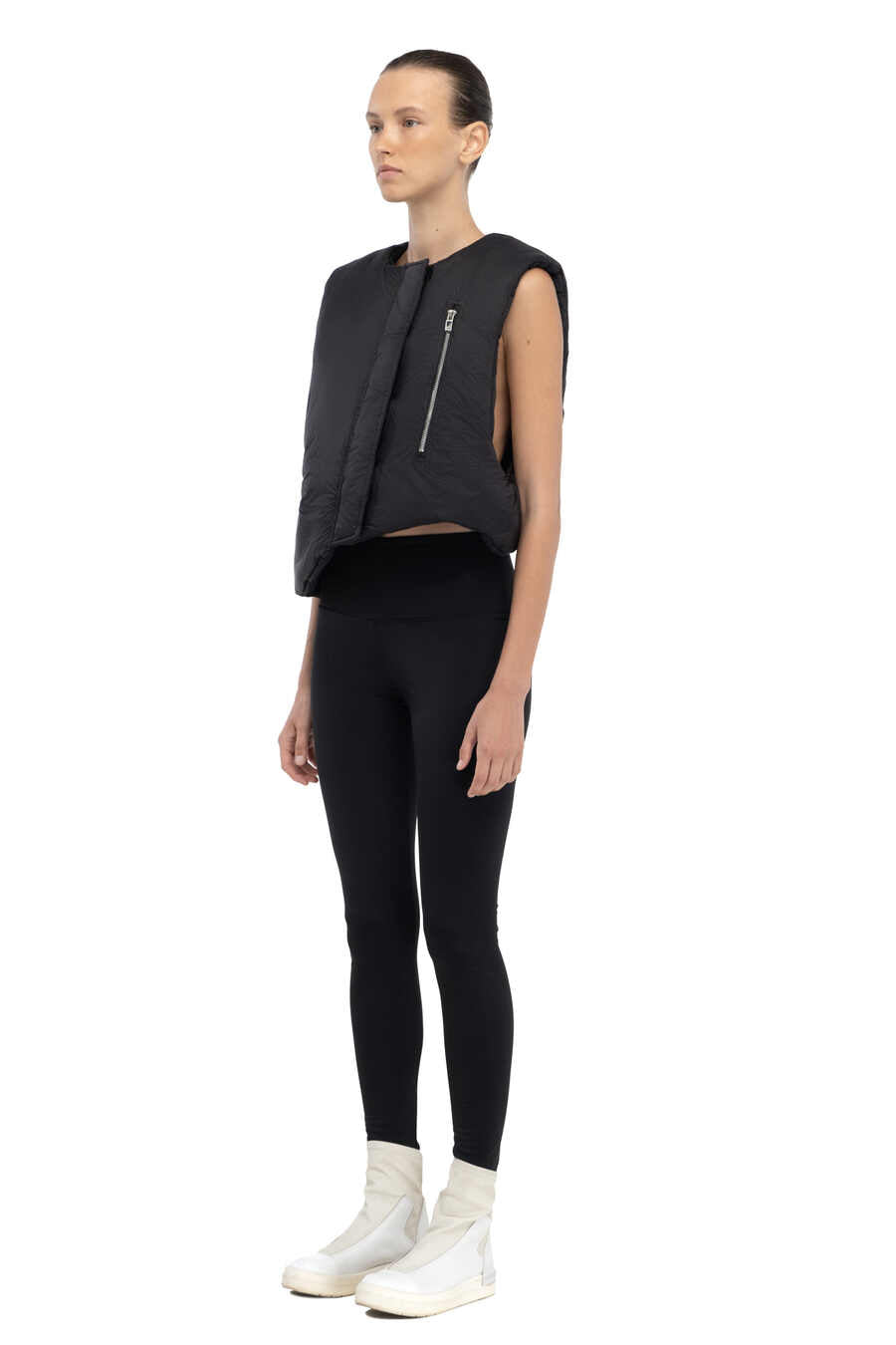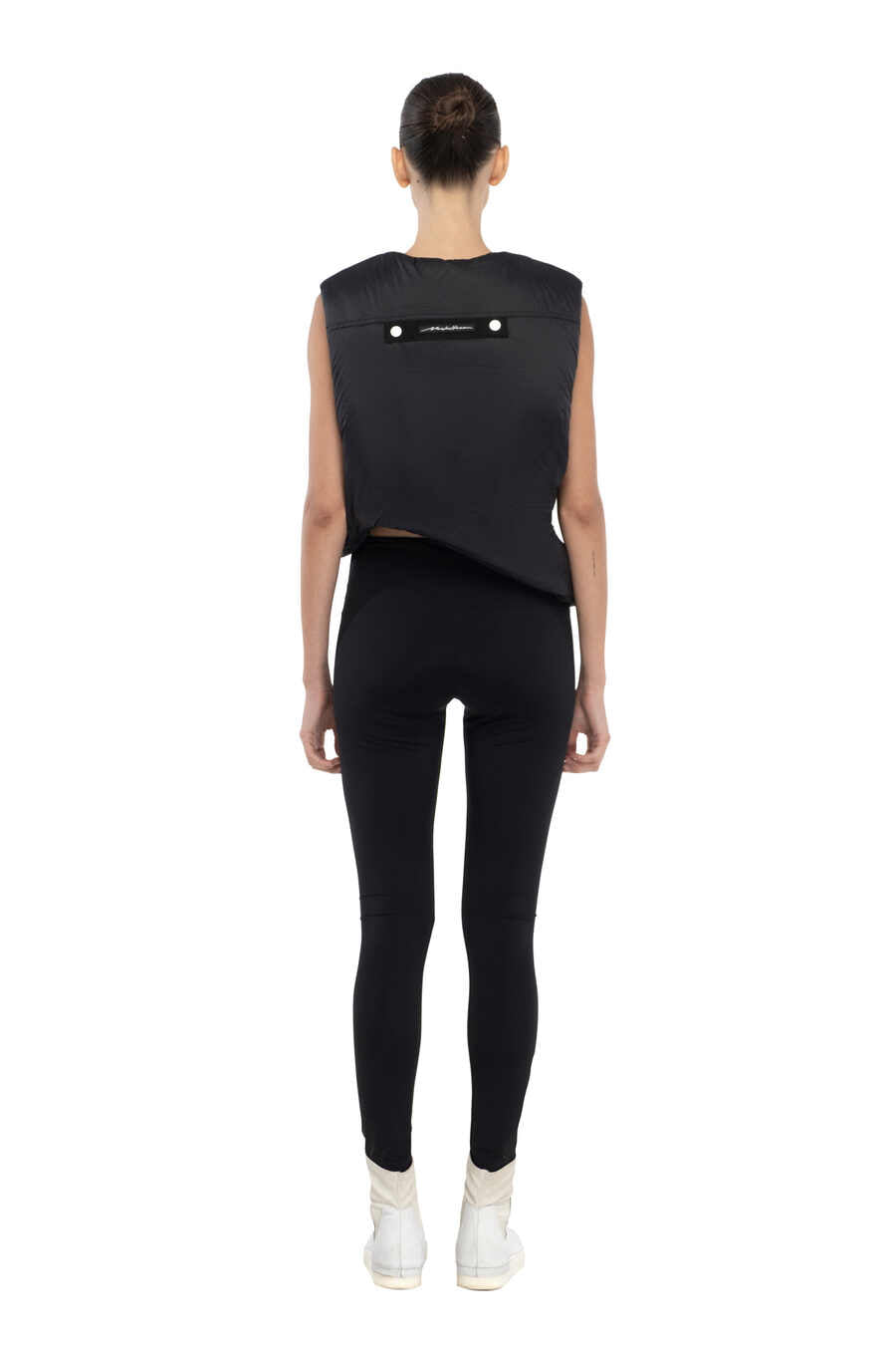 W128 Жилет з поліестеру чорного кольору, укорочений.
