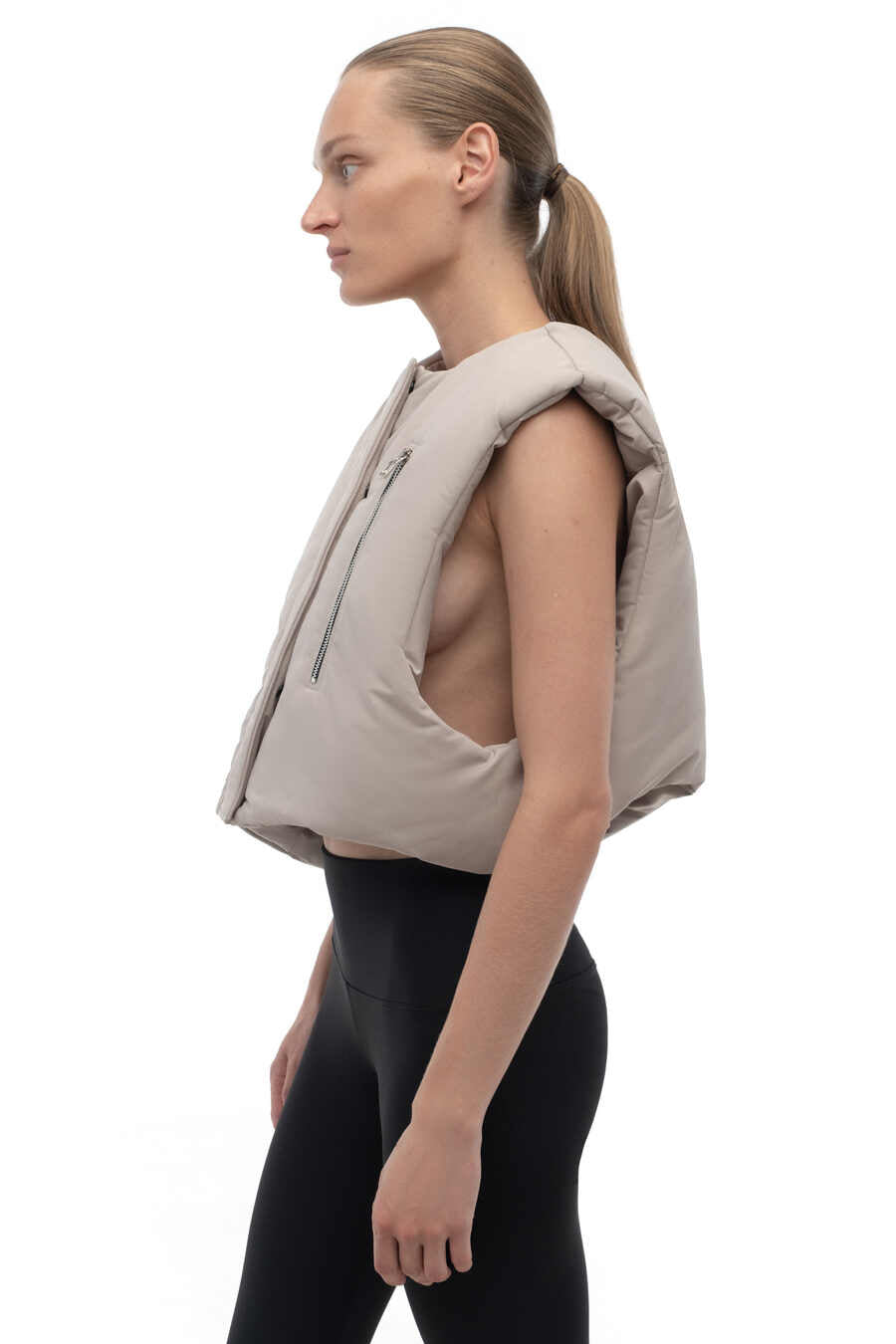 W128 Пісочний поліестеровий жилет укороченого крою.
